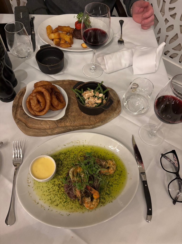 We ate in the hotels Marco Pierre White restaurant. We both decided to have fillet steak just cooked in different ways. They were scrumptious!