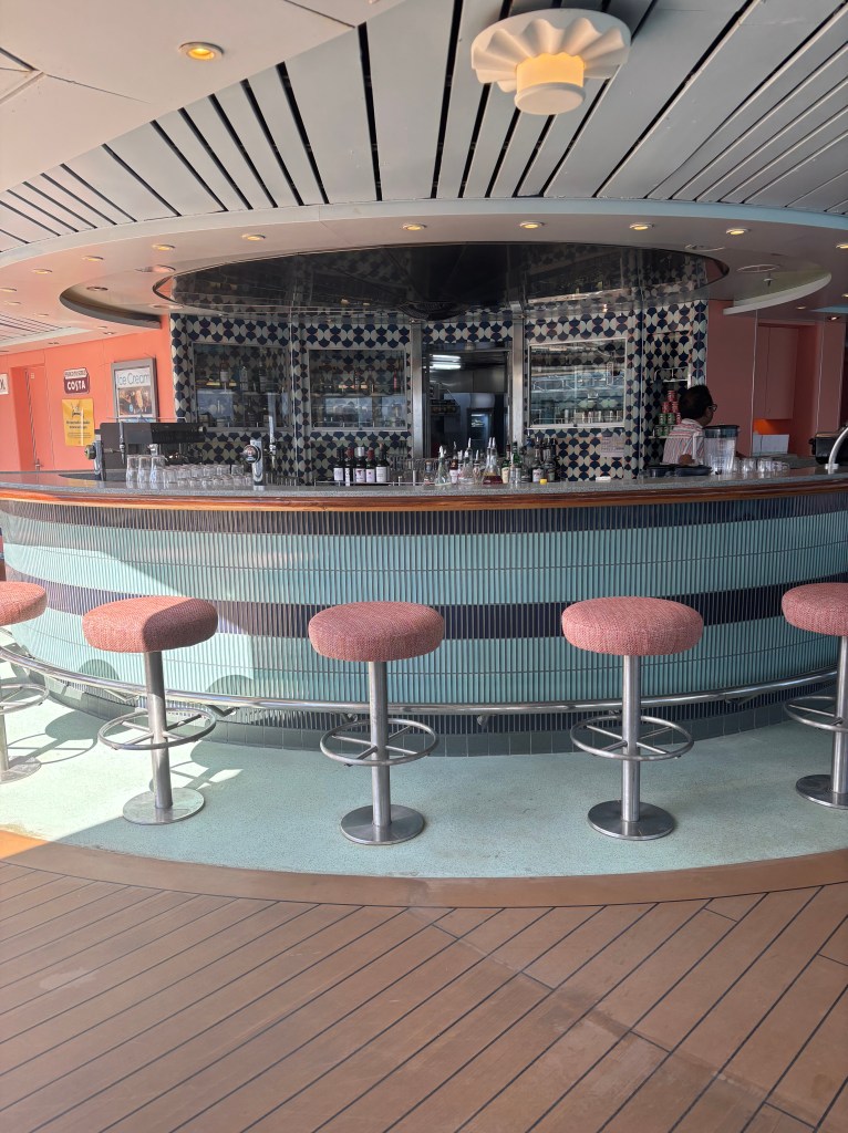 AT 3pm we joined in the Baggo competition being held by the Neptune pool. Andy was very happy to win and received a P&O sticker (These are collected over the whole cruise and exchanged for prizes) It’s all for fun and the prizes are just small tokens from P&O. Pens, key rings etc.