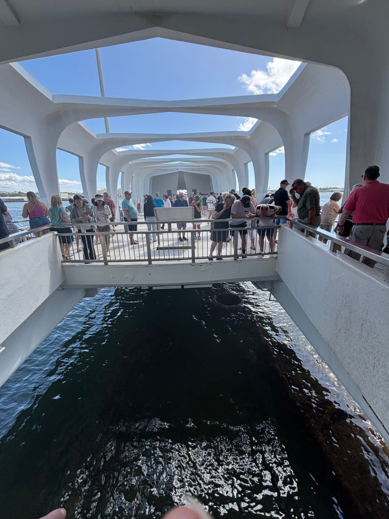 Soon we were at the Pearl Harbor National Memorial site for USS Arizona, USS Oklahoma and USS Utah. We had booked a ticket online for the boat to visit the USS Arizona Memorial. $1 is all it cost. Other than this the whole site was free to walk around. There was so much to see and to watch the real life experience of it all right there on film. Respect was upheld by everyone and I found it a very emotional moment. Our visit to the USS Arizona Memorial was quietly amazing. To think we were stood on that memorial over the wreck of that ship. That those men, never recovered, were still there, deep in their ship. Also that others have since died and have had their ashes laid to rest alongside their comrades.